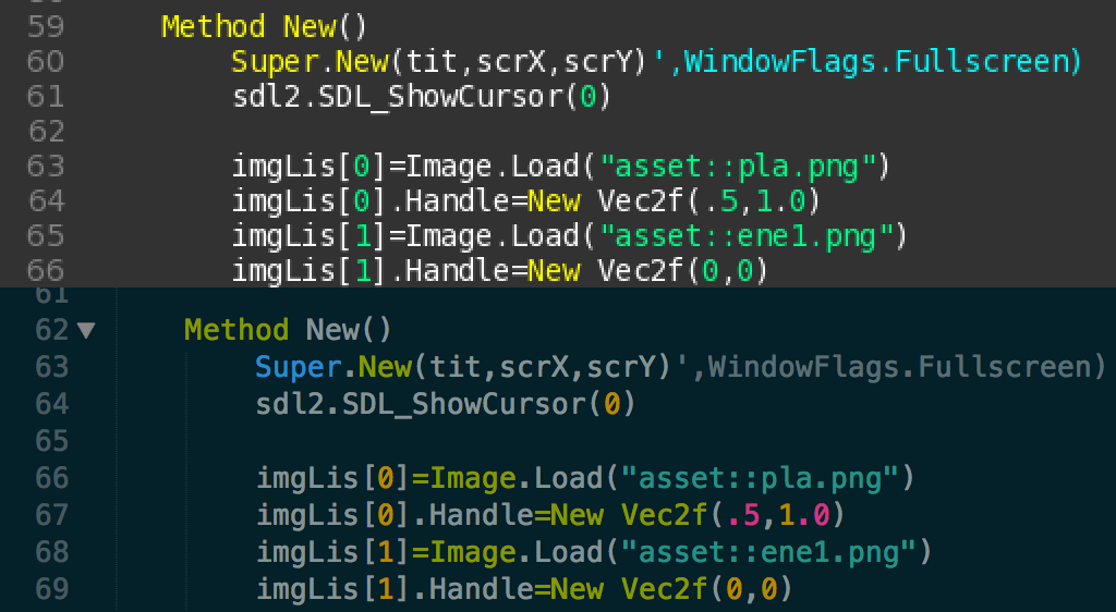 Thirdly, I’ve added some renderstate stuff to the Image class including BlendMode, TextureFilter and Color properties. BlendMode and TextureFilter default to ‘null’, which basically means ‘use the canvas property’, ie: old mojo behavior. But if you set these to non-null, they will override the canvas properties. Color defaults to white, and is modulated by canvas color.