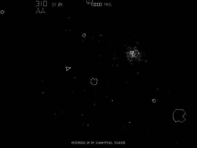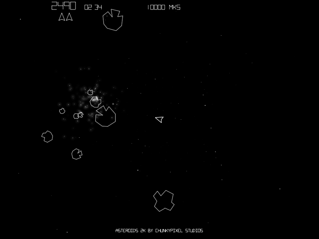 1920 – 1920×1080I have tried to follow the arcade version fairly closely from a play view point – still got a few things to do such as the high score table and a bit more work on the tempo (very hard to get past Level 3-4) but a good start. I’ve already added some extra stuff such as level counter and remaining asteroids (ahla Wizball) and I also want to add collectable power-ups such as speed-ups, multi-bullets, bombs etc to give it a bit a of more modern flavour. As with vector games, the screenshots don’t do the visuals much justice but it looks pretty good on-screen – moving starfields and glowing explosions etc.