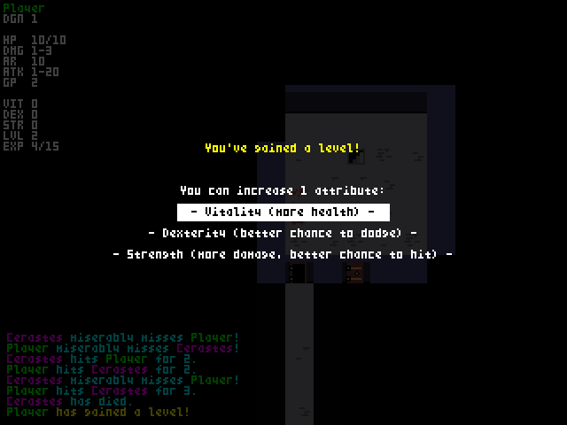 I’ve been working on a roguelike for the last few weeks. The game is nearing ready for a first release in about a week, just have a few rough edges to smooth out.