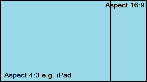 For devices like iPads the visible size would be 384×288 of that background image. So the remaining 128 pixel of that background would simply not be visible but cropped. Scaling is always done using the y axis ratio. So when the native resolution of the device is 768×576, my background image would be scaled up to 1024×576 but cropped so that only 768×576 would be visible.