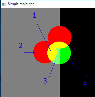 Monkey123456789canvas.Clear(Color.Grey)canvas.Color=Color.Blackcanvas.DrawRect(200,0,200,400)canvas.Color=Color.Whitecanvas.BlendMode=BlendMode.Alphacanvas.DrawImage(image1,150,50)canvas.DrawImage(image1,100,100)canvas.BlendMode=BlendMode.Additivecanvas.DrawImage(image2,x,y)The problem for me is area marked 3. I don’t need any blending there.