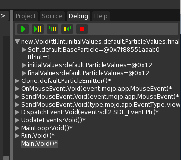 Monkey12345Method New(factory:ParticleFactory, interval:Int, ttl:Int = 500, LockParticlesToEmitter:Bool = False)Super.New(ttl, Null, Null )...End Method…appears to fix it for me, although like I say it’s hard to reproduce here so I’m not 100% sure.