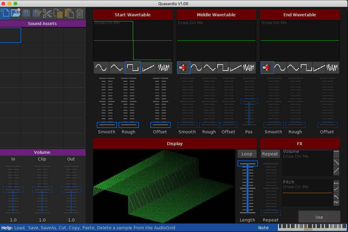 There will be a fx section which will allow other stuff to be added, so that beeps, boings, blips, water wind, etc will be simple to do. just a few clicks.