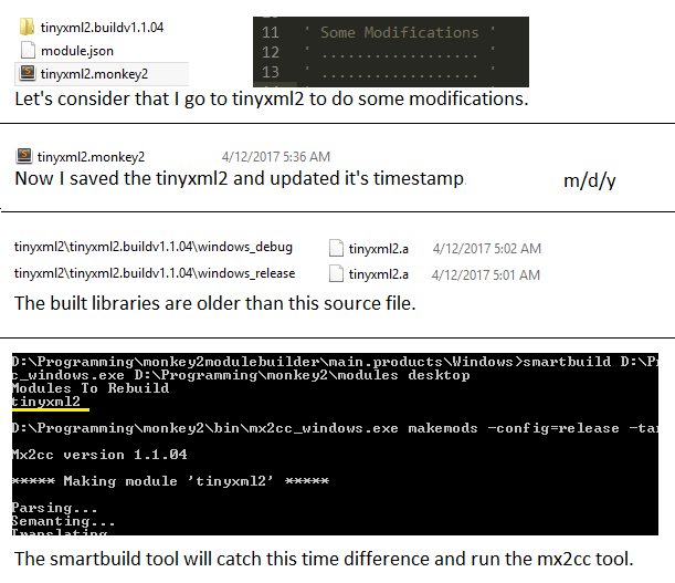 This tool was based on Degac’s cool idea. It will try to build modules only if any source file is more recent than any of the library files. It will detect this timestamp difference and if there is any, it will run the mx2cc tool.
