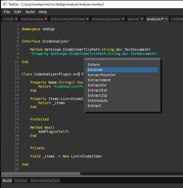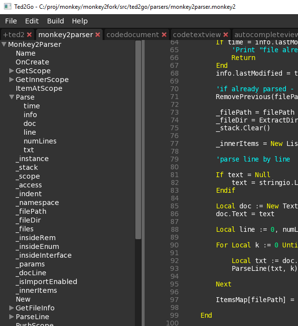 Next step 1 – write simple monkey2-parser, so we get smart completion.