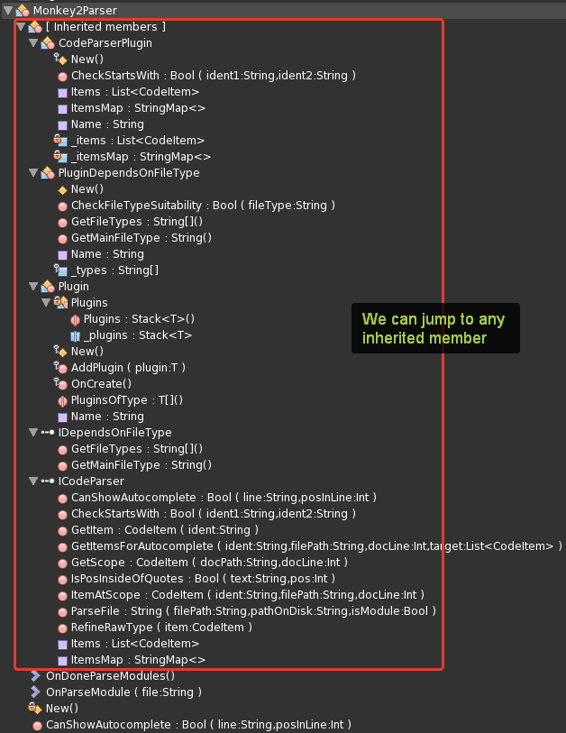 - Show inherited members – show all inherited classes and interfaces as sub-member.