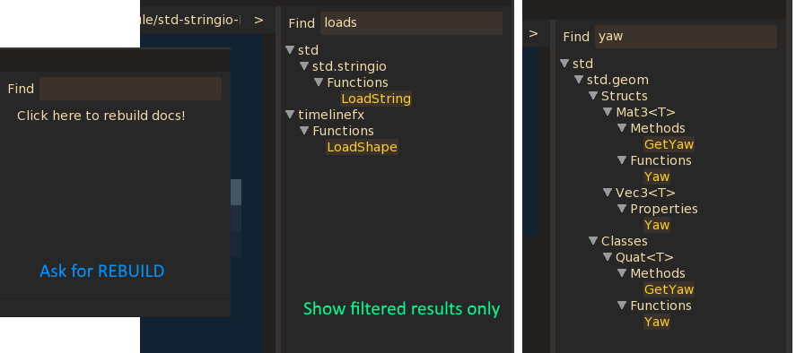 There is a problem – if you want to look at other members – you can’t because of fiter, if you removed filder – you need to find desired item by hand in docs tree. Therefore I decided to left whole list. You can press Enter to goto next found item.