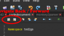 - Feature – navigate back / forward via alt+left / alt+right or toolbal buttons. Stored points – jumping via CodeTree or via ‘Goto declaration’.