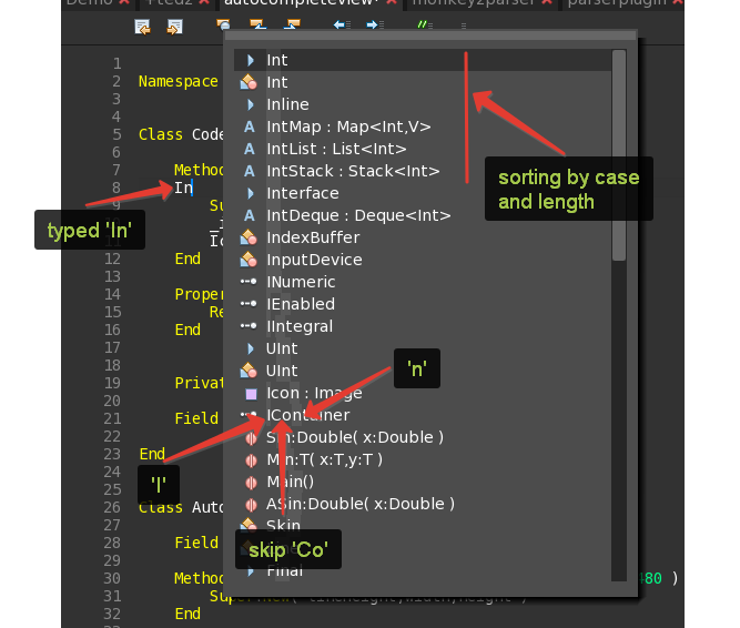 [*] – now, there is letter-by-letter checking with distance 3 chars. So, if we have ‘similar’ methods like Destroy() and OnDestroy() and typed ‘des’ we will see both these methods in autocompletion list.