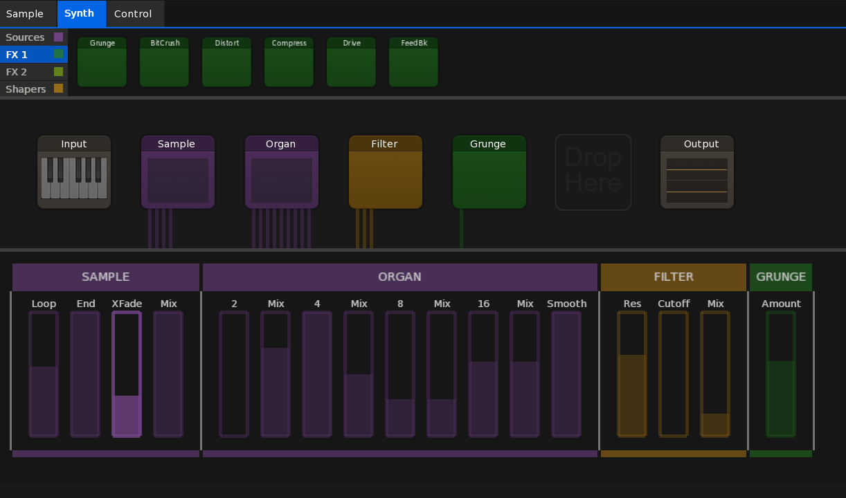 OK. Now I have the direct control over the audio subsystem I can create completely new sound sources and fx. that can simply be dropped into the sound chain. These alone make a powerful system, but…
