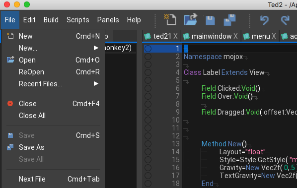 Also just noticed that if I drag the window to one side (as I normally do, so it fills half the screen horizontally), the “Application built” text and line numbering overlap each other really messily. I’d suggest either just showing the executable name, rather than full path, or cutting it off where the line numbering starts. (Or both.)