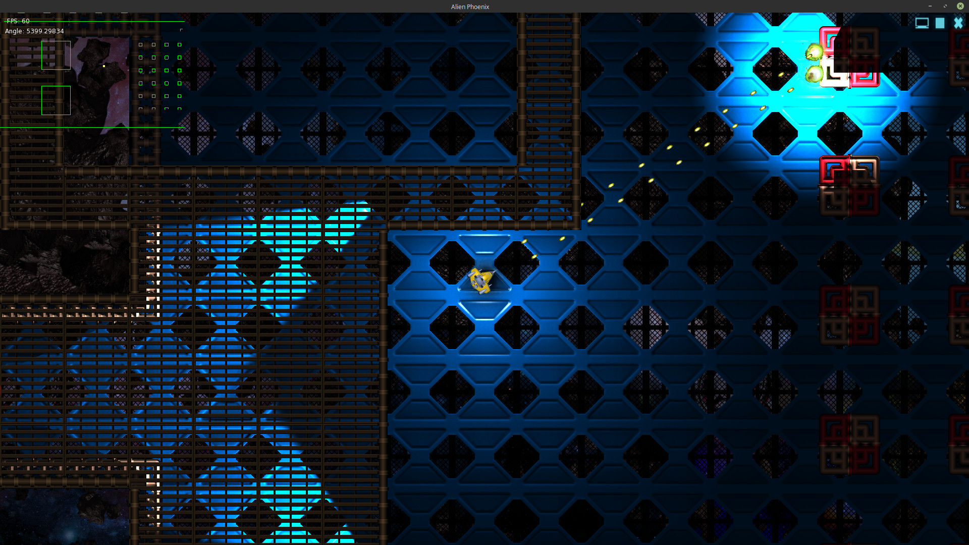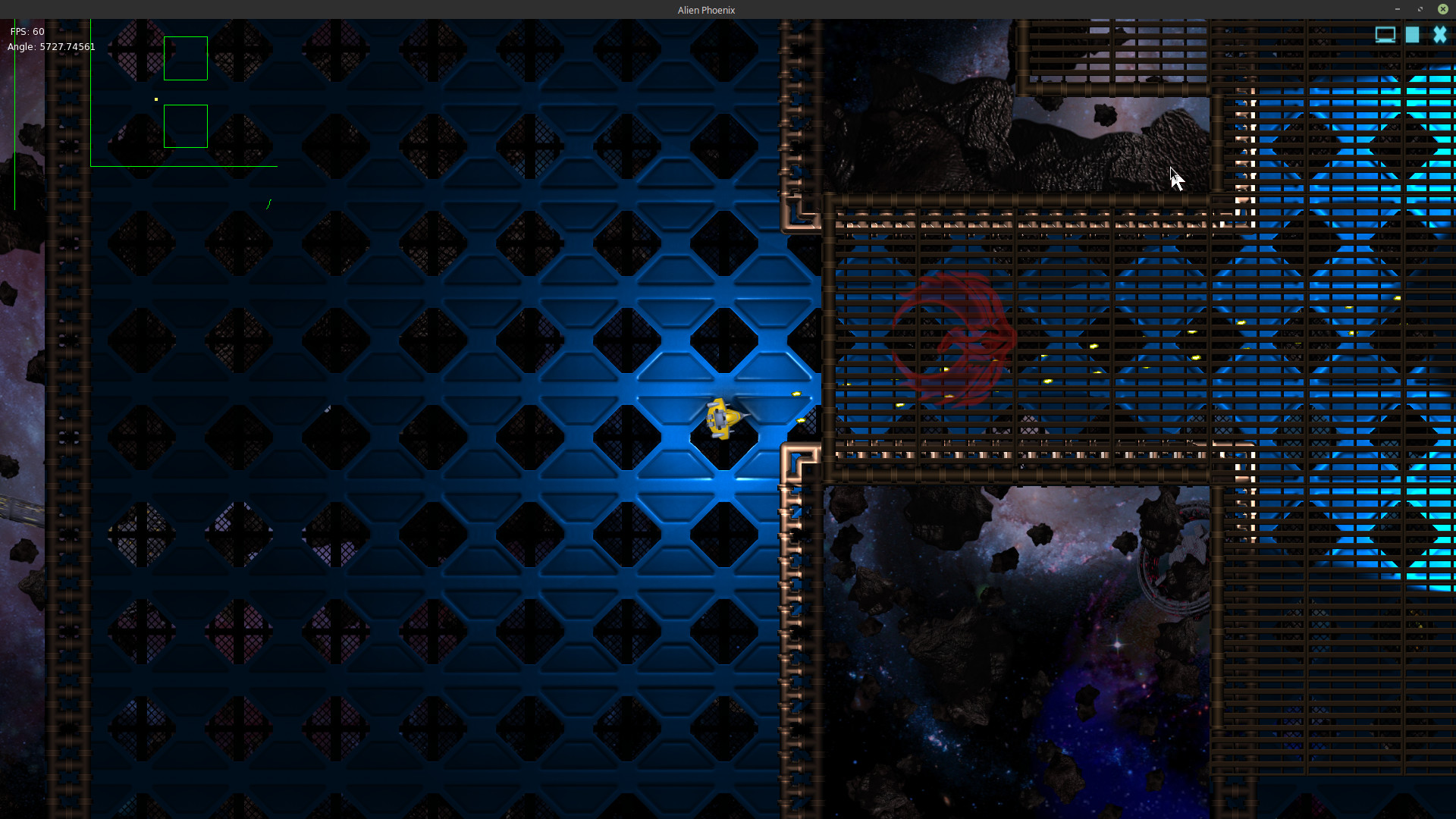 These images show Alien Phoenix’s mapping system in action. The map system allows you to essentially fill a 2D plane space with part objects (walls, floors, etc). This allows multiple levels or layers of simultaneous game play on the same map.