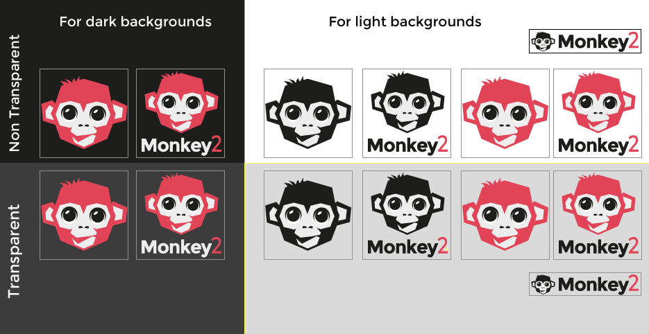 Below are the different versions of the Monkey2 logo and the overview of their intended use.