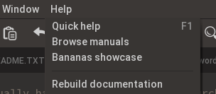 To get started with monkey, please check out the “bananas” folder that is included with all versions. “Bananas” is a set of small test programs and games, that can help you get an idea of how different things are done. You can also get to the bananas examples by choosing “Bananas Showcase” from the “Help” menu in the editor (called Ted2Go).